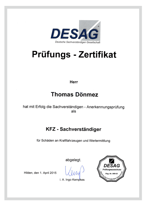 DESAG Prüfungs-Zertifikat