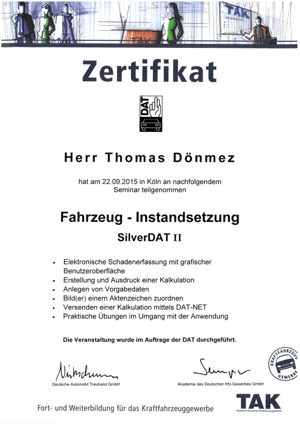 TAK Zertifikat Fahrzeug-Instandsetzung SilverDAT II